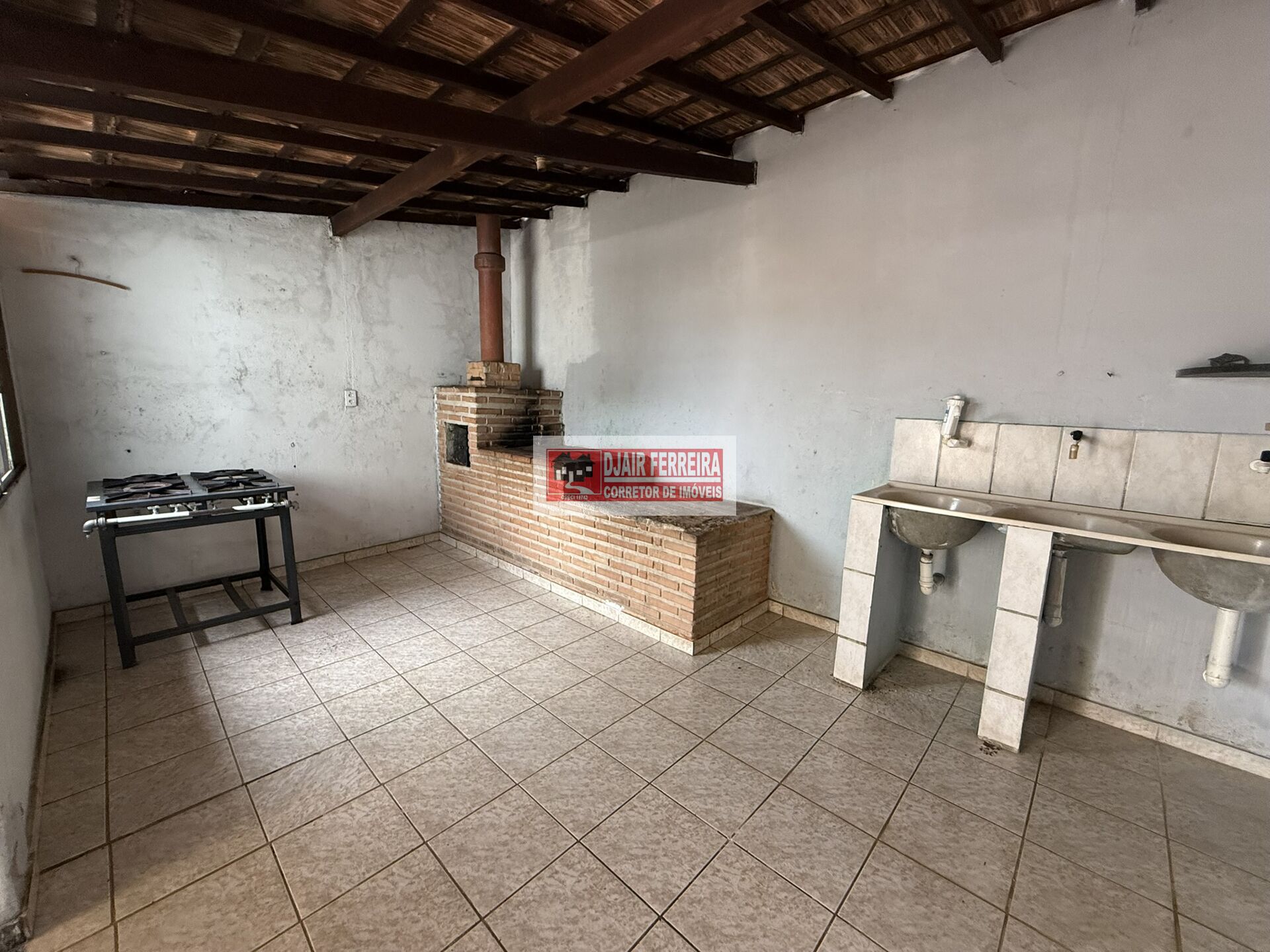 Varanda, sala, 3 quartos, 2 banheiros, copa e cozinha com fogão a lenha.